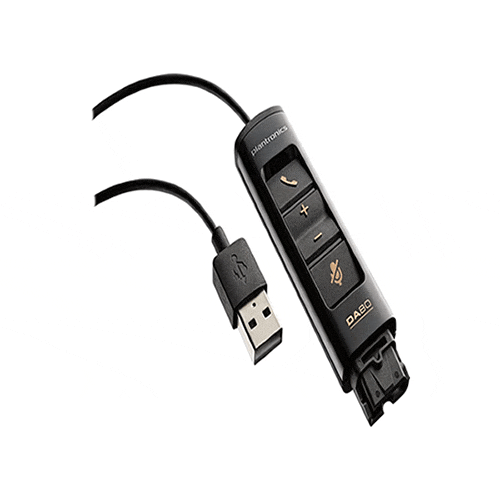 The DA80 adapter gives you easy to use inline volume controls, mute, and call answer ability with compatible software.  This allows you to raise/lower your caller’s volume quickly to a good level for you, ensuring every call is crisp and clear.  You can also easily mute your microphone with a push of a button, if you need to converse with a co-worker.